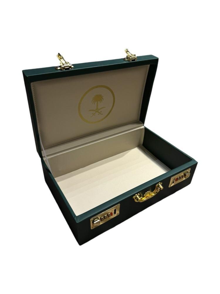 حقيبة جلد ألماني لون زيتي شعار سيفين ونخله قفل أرقام حجم كيلو