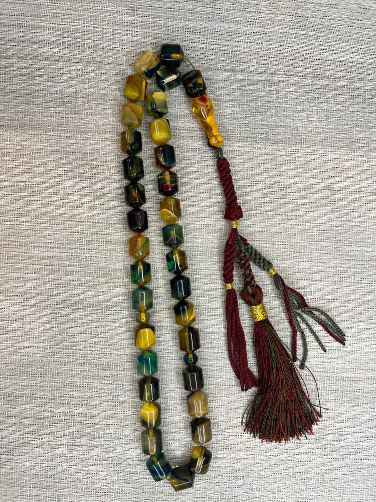 لمحبي الفخامة والتميز سبحة مسكي انتيك كراكيش حرير طراز خليجيصوت رنان مقاس ١٠-١٢ عدد الخرز ٣٣ خرزهخامة نظيفه وشغل يدوي خاص.